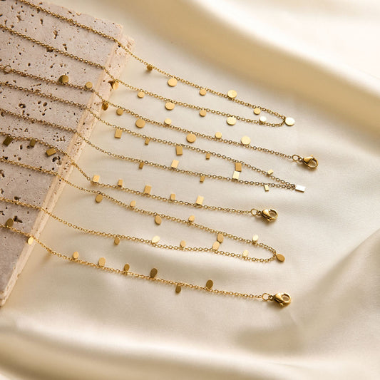 Titanium Steel Non-fading Geometric Collarbone Chain 18k Gold Water Drop Small Square Heart Necklace