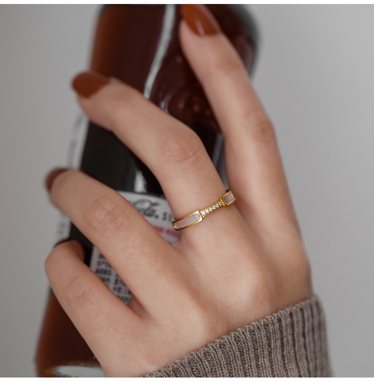 Color: D015 Diamond-Encrusted White Mother-of-Pearl RingβGold