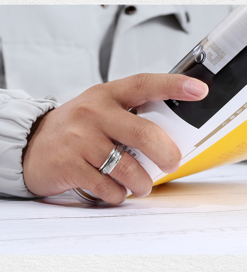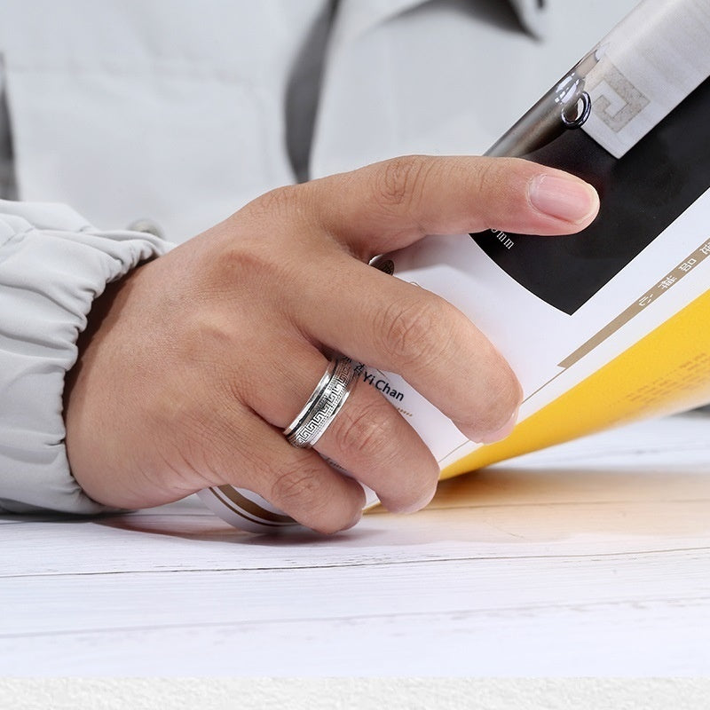 Mens Personalized Vintage Minimalist Swivel Ring With Rotating Meander Pattern